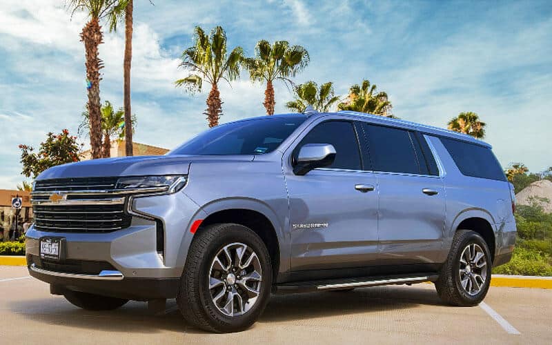Combinación de lujo y confort, la Suburban es el vehiculo perfecto para grupos pequeños que necesitan transporte privado del Aeropuerto Internacional de Los Cabos al Hotel e inclusive servicio de transporte dentro de Los Cabos